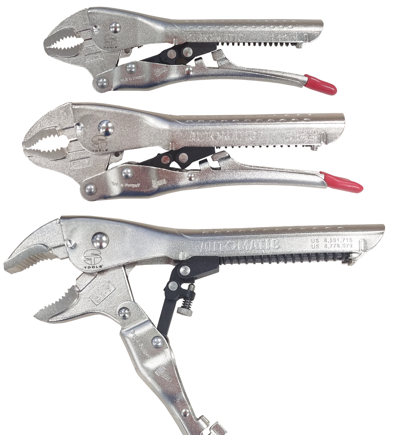 • The patented “locking mechanism system” allows the pliers to “self adjust” and lock automatically without jaw adjustment.