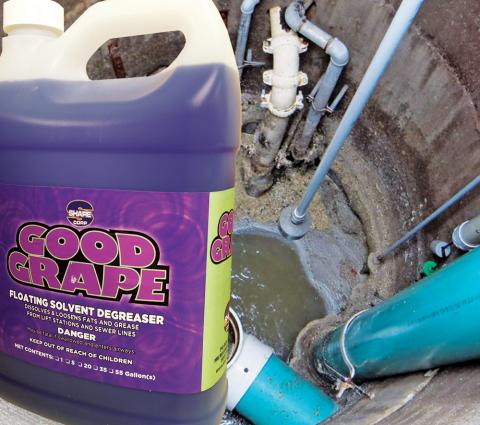 Keep sewer lines, lift stations and grease traps free of build up and obnoxious odors with GOOD GRAPE floating solvent degreaser from Share. GOOD GRAPE contains a variety of degreasing agents that attack organic waste quickly and efficiently, while it eliminates odors with a pleasant grape fragrance. The floating formula stays concentrated on top of the water to strip away fat and grease accumulations as water levels naturally rise and fall. Also, built-in emulsifiers in GOOD GRAPE entrap debris and dissolved greases in the solvent to help aid in removal. A built-in, color level indicator allows the operator to determine the product level by visual inspection. When you need a floating solvent degreaser that takes on tough organic waste and leaves a pleasant grape scent, use GOOD GRAPE from Share.