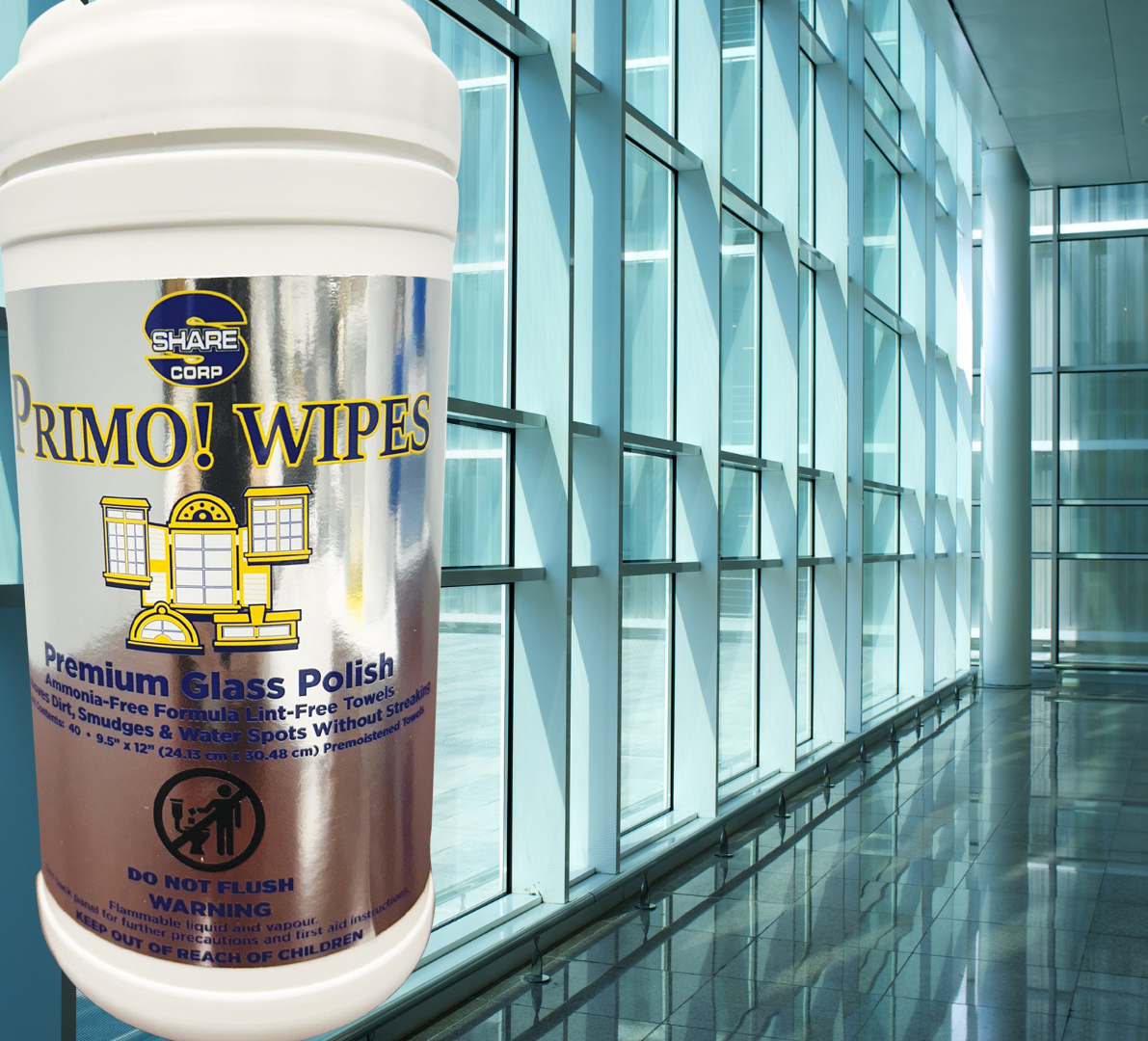 Pre-moistened with a powerful ammonia-free formula, PRIMO! WIPES will quickly remove dust, dirt, oil and grease smudges, water spots, fingerprints and smoke film from glass surfaces and leave them with a sparkling shine. Not only is PRIMO! WIPES perfect to use on windows, but they are also great for cleaning and adding a bright luster to mirrors, light fixtures, windshields, display cases, shower doors, glass tables, computer screens, whiteboards and more. Unlike other glass cleaning towels, PRIMO! WIPES actually work and they won’t leave behind streaks or a sticky film to cloud your visibility. Powerful formula is VOC compliant and ammonia-free, so it’s safe to use on most surfaces including tinted glass windows.