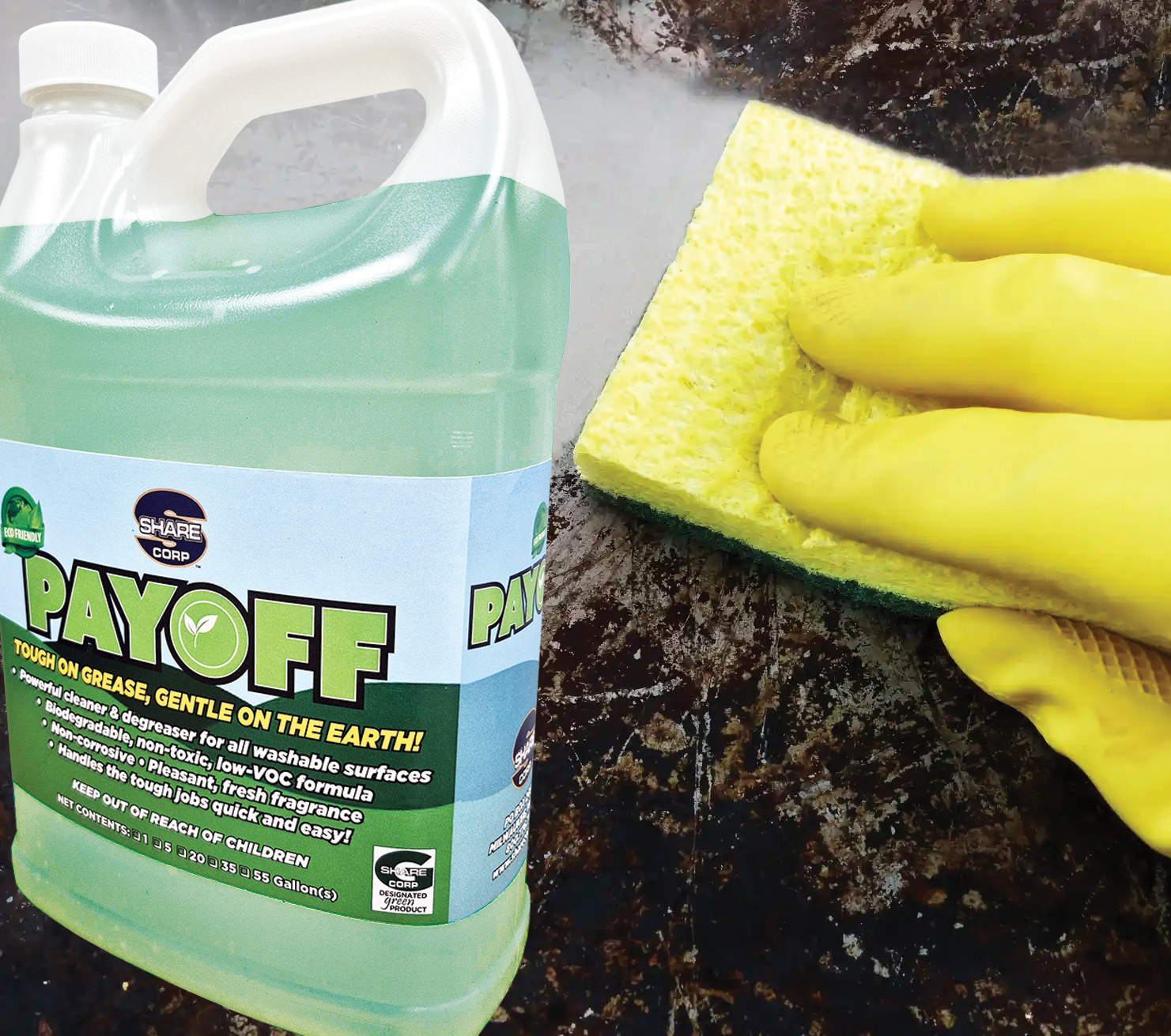 PAYOFF! The Greener Way to a Cleaner Space! Cut through tough dirt, grime and grease without harsh chemicals. Our eco-friendly engineered, powerful, biodegradable formula tackles the dirtiest jobs while being safe for use and the environment. It’s the incredible cleaner you need with the eco-conscious choice you want.